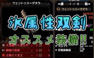 使用武器は火属性はデストロ=Y、水属性はD=イレクトロ、雷属性は神成・雷禍白業、氷属性は白兎雪矜ネーヴェスレ、龍属性は災禍斧ダルクメルツェです!