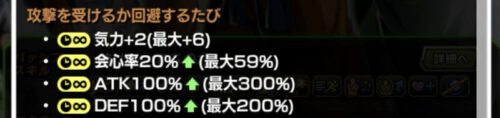 そして攻撃を受けるか回避するたびに最大DEF200%アップしますので、耐久面では申し分ないかなとは!!