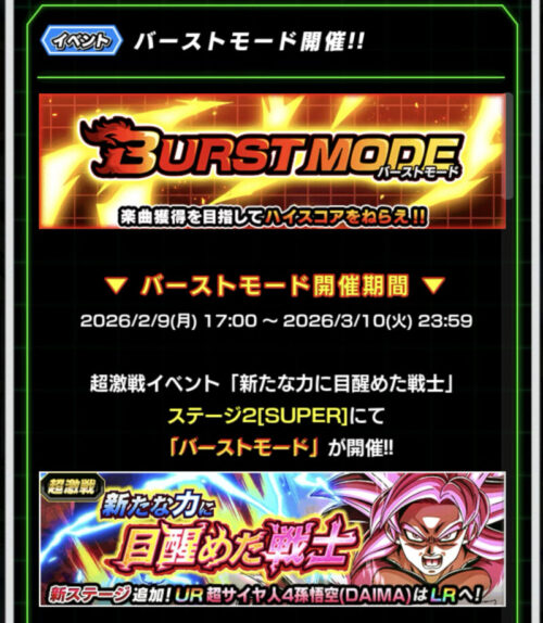 今回は2026年2月9日から開催したバーストモード【新たな力に目醒めた戦士】ステージ2でスコア8000を取る攻略をご紹介していきます!