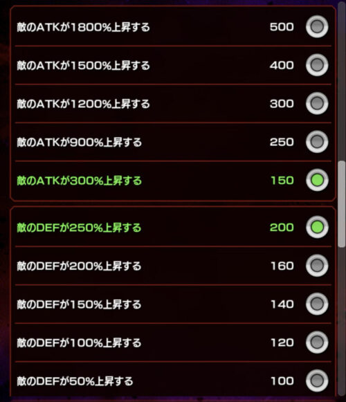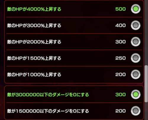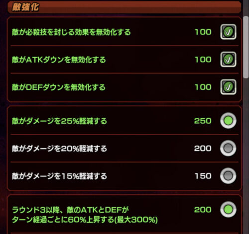 敵強化の部分は必殺封印無効とか軽減とかは全て選択ですね!