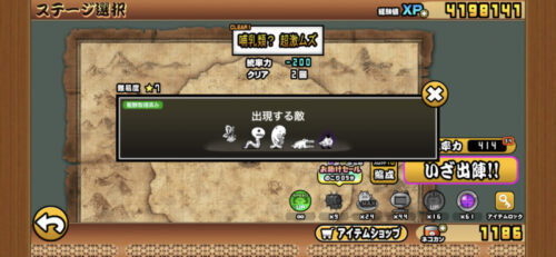 このステージはクリアしますと確定で狂乱のネコトカゲが手に入りますね!