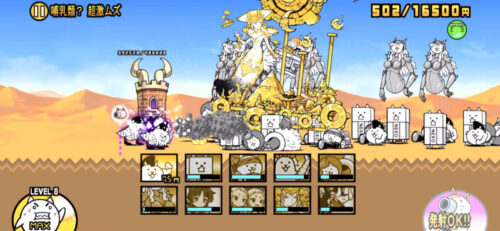 ここで注意なのがガガガガは倒すと一気にお金貯まるので、お金が溢れないようにもう働きネコのレベルは連打しておきましょう!