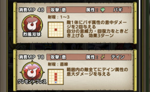 そして更に自分以外の悪魔系の仲間が攻撃した時に、直線3マスまでの範囲内にいる敵にクレセントブレスで追撃します。