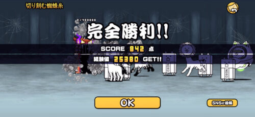 ただ累自体の攻撃がかなり痛く、移動速度も下げられてしまうので極ネコ祭の無属性に強いキャラ持ってないとスコアは厳しそうかなとは…