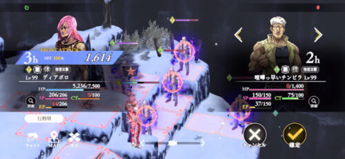 そして最後のブチャラティ&フード戦では恐らく動きながらアビリティを使うと、先制とられて逃げられるので場所は動かずにアビリティは使用しましょう!
