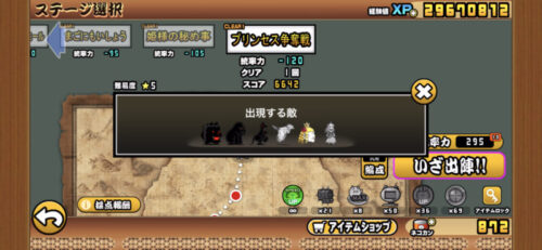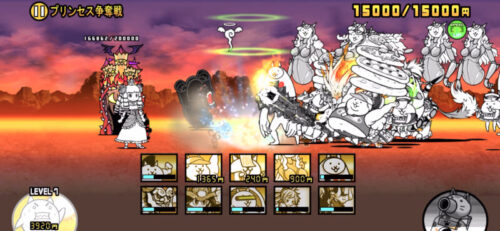 まずネコデリバリーを出しつつ黒い敵を処理していきます。
