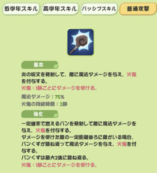 火傷付与が単体の普通攻撃のみ