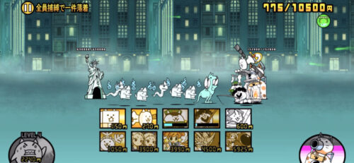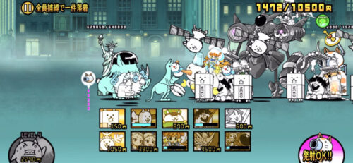 一定時間経過後に出てくるエイリアンのハサミーマンがステージの半分くらいまできましたらネコ漂流記は必ずでネコベガなり安価のアタッカー、壁役を出しましょう!