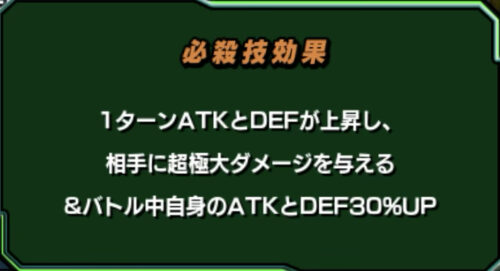 1ターンの間ATKとDEFが上がるのはもちろん、他にもバトル中のATK、DEFを30%上げます