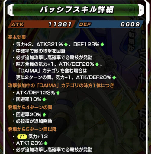 DAIMAなら気力2でATKとDEFが計40%アップ!