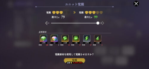 こちらは虹の覚醒ダイヤは必要ありませんが、覚醒ありつつレベルもあり