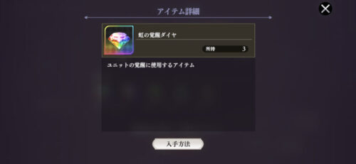 ちなみに虹の覚醒ダイヤは現状イベントの交換報酬か課金(回数制限あり)となっています。