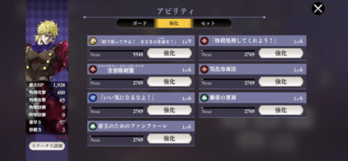 ここでアビリティを強化して必殺技とかアビリティとかのダメージ割合を増やす感じなのですが…