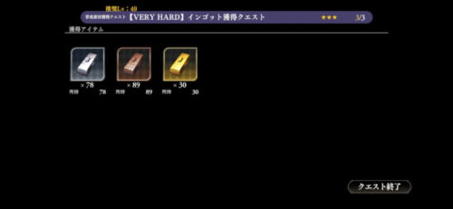 そこでインゴット(ゴールドに換金するアイテム)獲得クエストAP400(20周分)消費して…