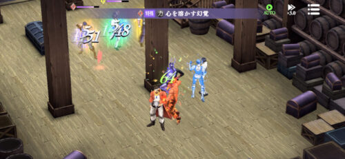 まず開幕自軍、敵軍共にバフをかけ終わりまして、向かい撃つのですがプッチの心を溶かす幻覚が広範囲かつ高火力で強い!