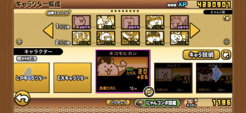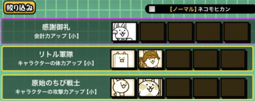 お金が貯まりますので下の段のネコパーフェクトや妨害役のキャラ達を出しまくります。