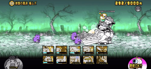 そしてネコデリバリーでゾンビを倒しつつ、後ろからゾンビ、黒い敵の妨害役などを出撃!