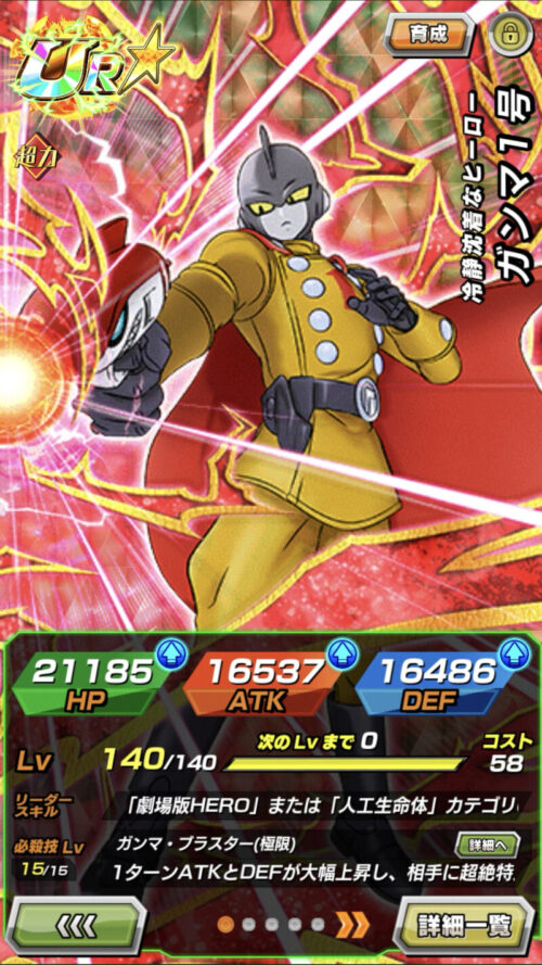 ここまで極限Z覚醒後の冷静沈着なヒーロー:ガンマ1号の使用感を書いてきましたが、極限Z覚醒前と同じく受けがスタイルでそれでも最大になるまで攻撃を受ける回数が減ったのは良かったですね!