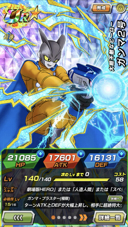それではまずは極限Z覚醒後の大胆不敵なヒーロー:ガンマ2号の性能を見ていきましょう!