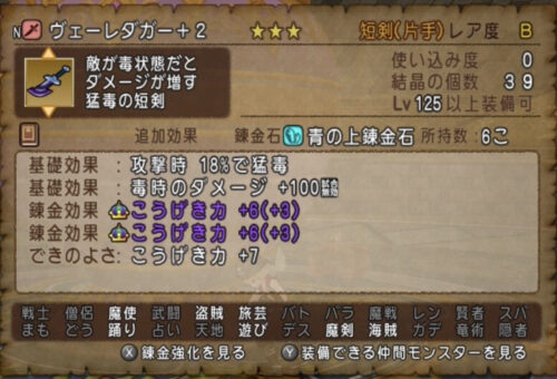 ただ…あとで錬金しようと残してあるヴェーレダガーが次成功しても普通に赤字なのでちょっとパルで強化狙うかな…