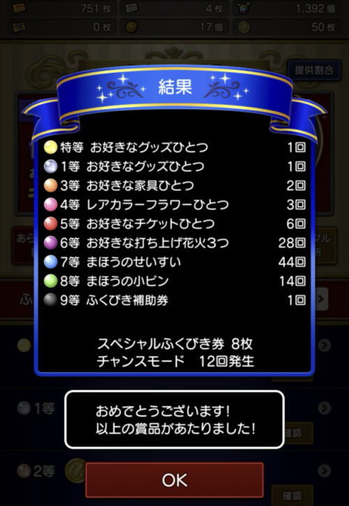 今度やる時(書くかはわからないけど)は、超大成功、大成功は狙わずに成功重視でやって、大成功シャッフルだけで調整して回してみようかな。
