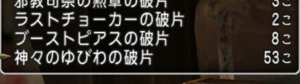 とりあえず神々のゆびわの破片53個集まり、現物は1個手に入ったので合成!