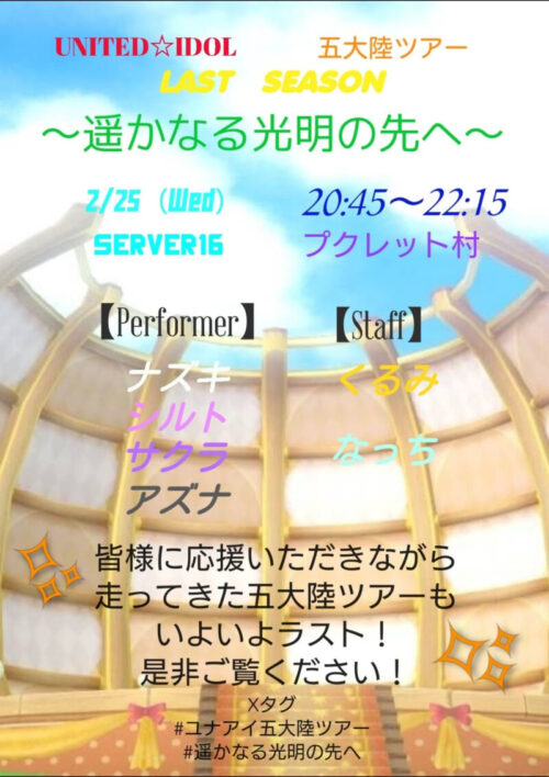 去年の4月18日よりエルトナ大陸のカミハルムイから始まったユナアイ五大陸ツアーですが…